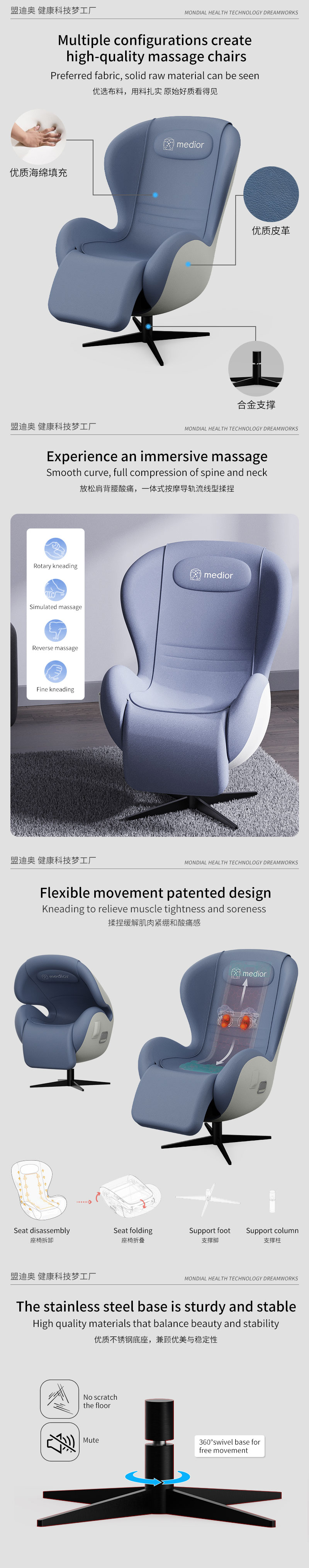 柔性休閑按摩椅 可坐可躺90-160°角度可調(diào)節(jié)仿真人揉捏按摩手法舒緩腰背 多功能遙控器一鍵啟動(dòng) 按摩行程95cm,從肩膀到小腿360°旋轉(zhuǎn)可拆卸披風(fēng) 方便清洗 獨(dú)家專利柔性機(jī)芯 超薄可折疊 包裝體積小