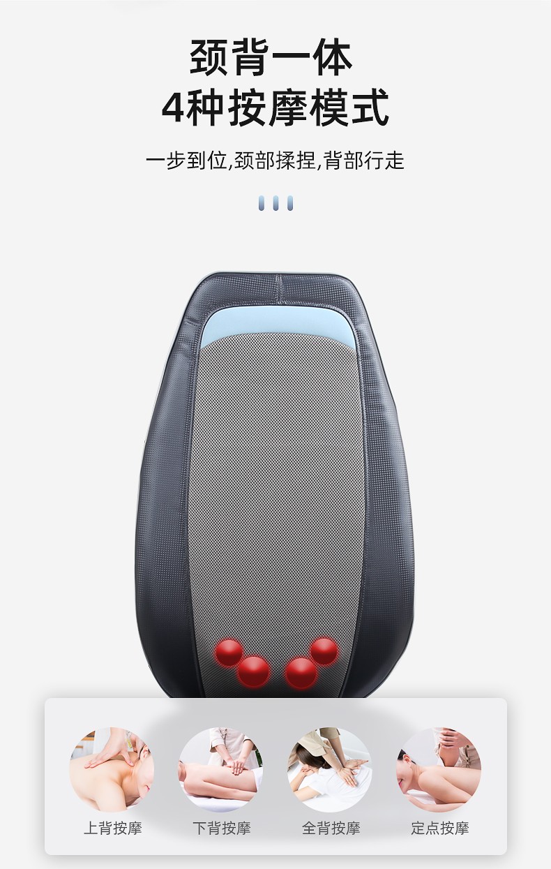 背部揉捏功能,三檔按摩力度可供選擇,背部定點按摩