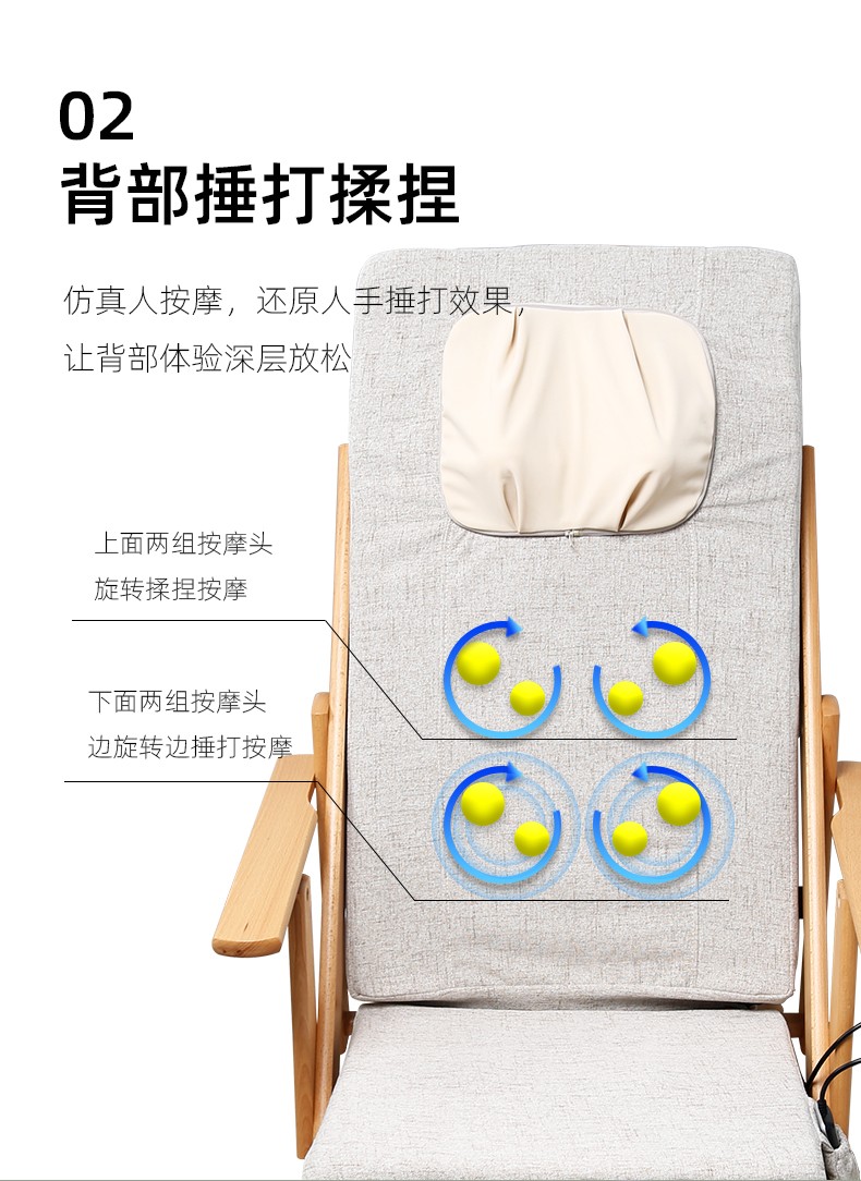 2.背部:上來來回按摩,有2組共4個揉捏按摩頭,有2組2個敲擊按摩頭。