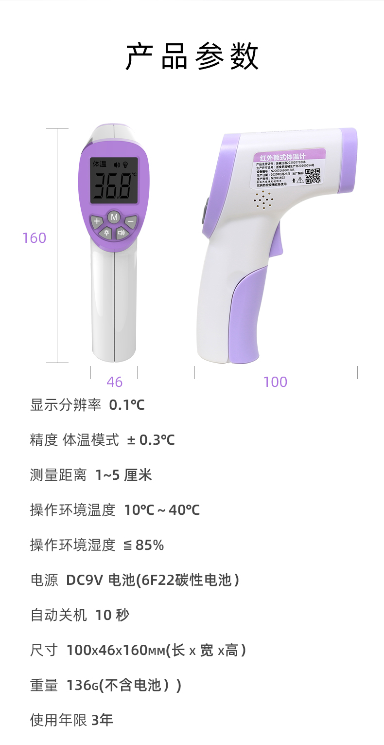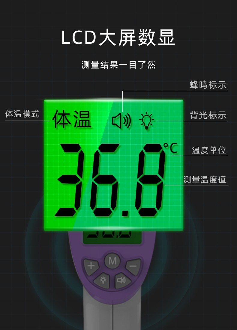 一秒的精確溫度測量。 高密度紅外傳感器,自動溫度測量,精確計(jì)算