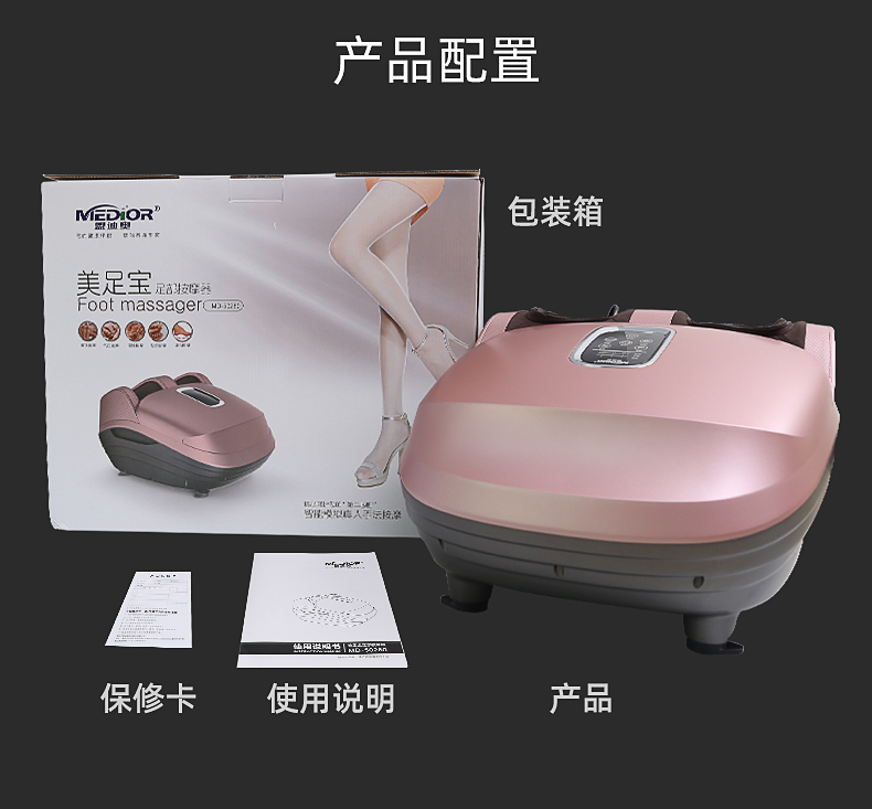 滾輪按壓(腳趾)、刮痧(腳弓)、捶打(腳后跟)按摩 (多模式,多強(qiáng)度);