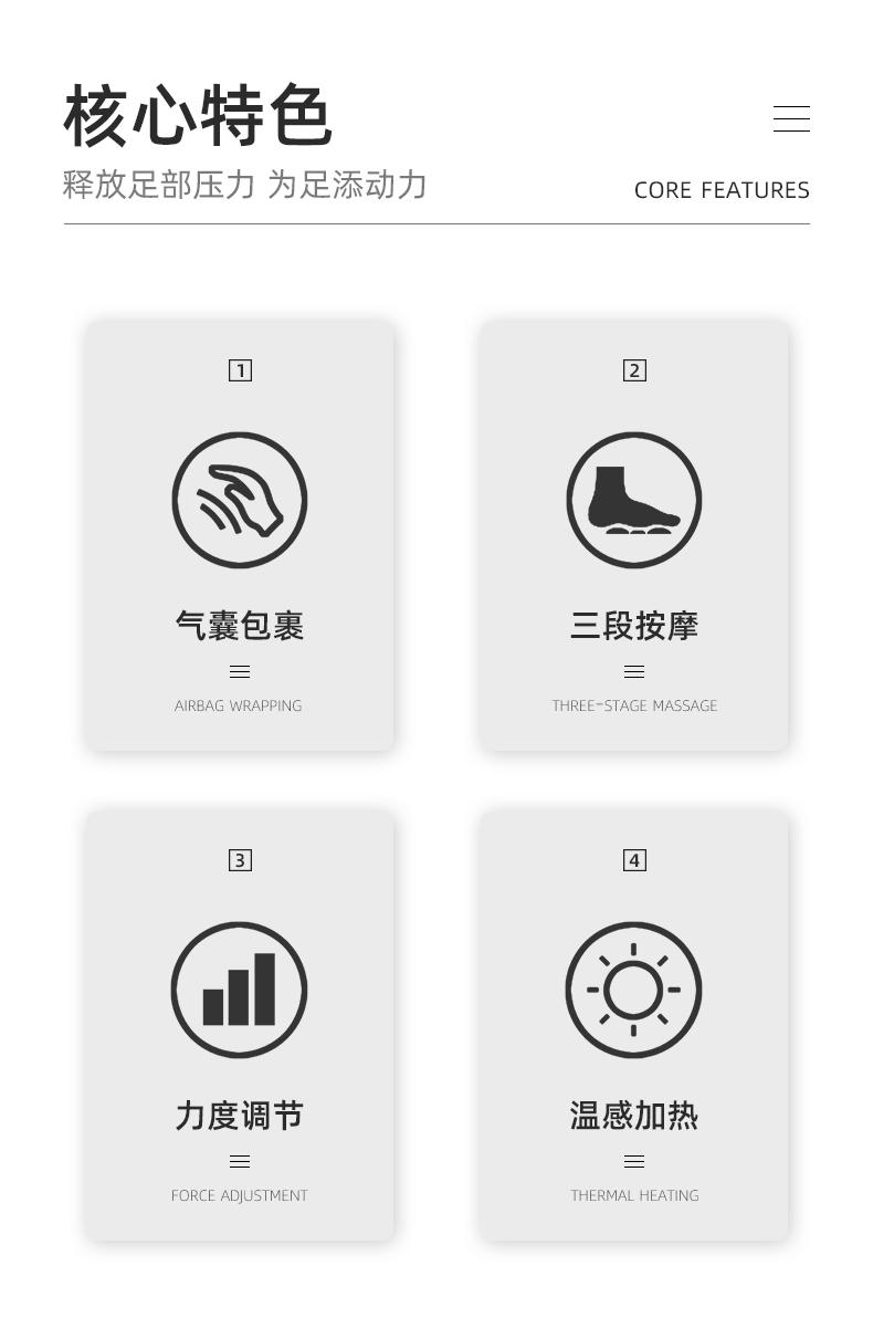 腳底 滾輪按壓(腳趾)、刮痧(腳底)、頂(腳后跟)按摩 (多模式,多強(qiáng)度)